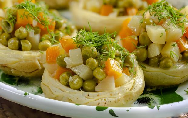 Ege usulü zeytinyağlı enginar, sağlıklı ve hafif lezzet arayanların vazgeçilmezi! Enginar çanaklarının içine yerleştirilen havuç, patates ve bezelye; zeytinyağı, limon suyu ve dereotuyla buluşarak muhteşem bir uyum yakalar. Sofranıza hem görsel hem de tat anlamında bir Ege rüzgârı estirmek istiyorsanız, bu tarif tam size göre!